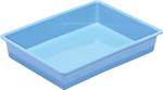 プラスチック製のバット(トレー)です。凹凸が少ない形状ですので、洗浄性に優れ清潔さを保ちます。