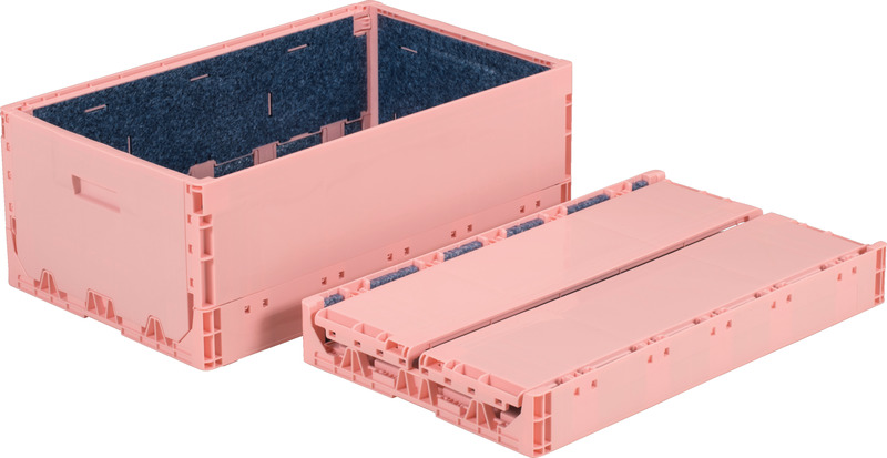表面は射出成形品、内面は発泡PPを組み付けた内倒れ式の保冷オリコンです。