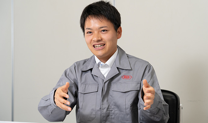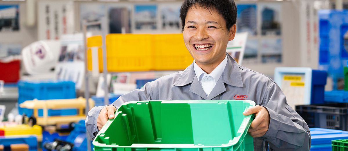 大学では環境材料工学という分野を専攻し、金属をはじめとするさまざまな素材について学んでいました。あらゆるモノのベースとなる材料に関する勉強をしていたため、プラスチックという素材を扱う弊社の仕事にはかねてから興味があり、入社を決意しました。